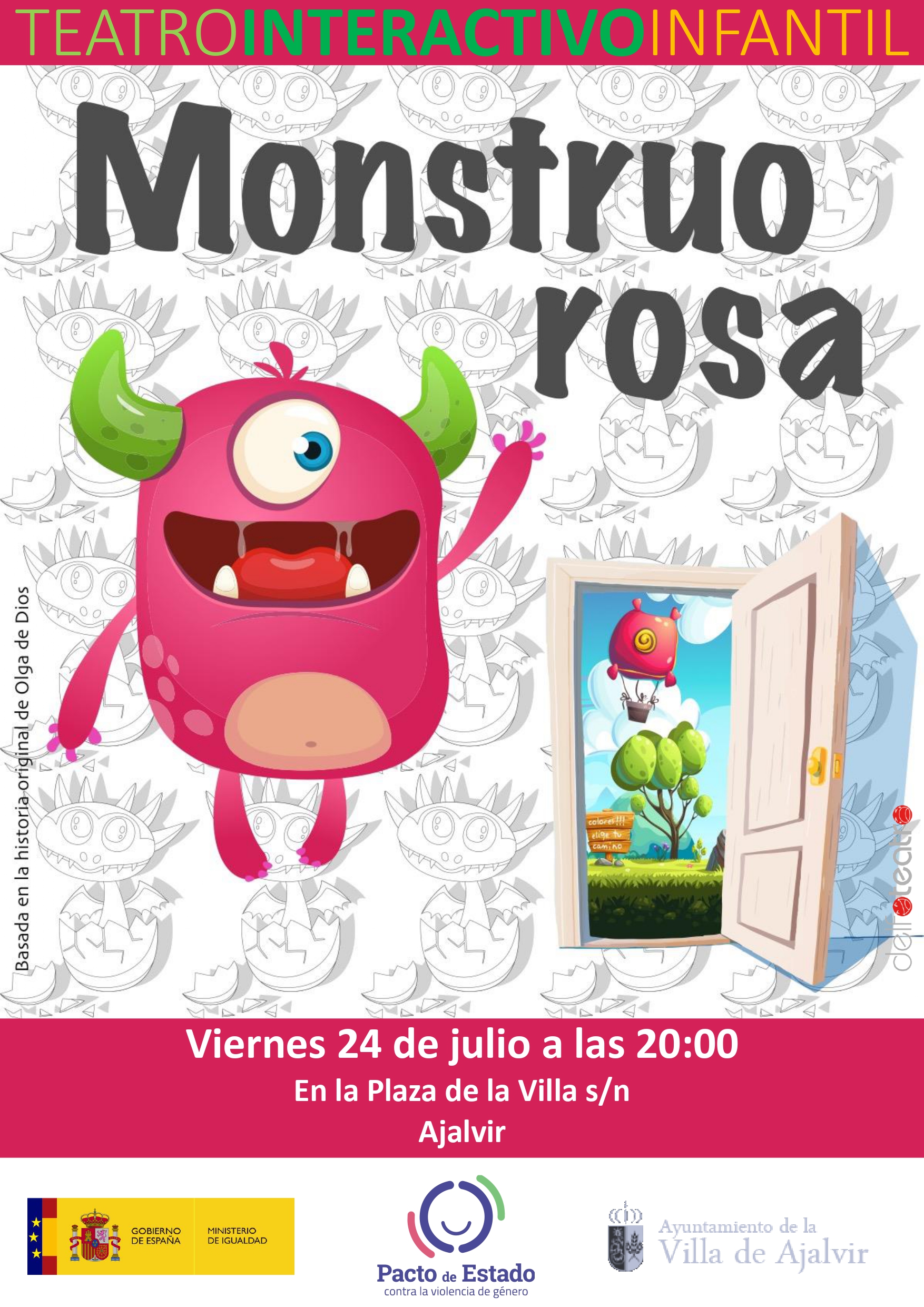 Actividades de teatro para disfrutar en familia el sábado 18 de Julio a las 21:00 horas con un teatro de títeres “ Fuenteovejuna” y el día 24 de Julio a las 20:00 horas teatro interactivo “Monstruo Rosa” en la Plaza de la Villa.