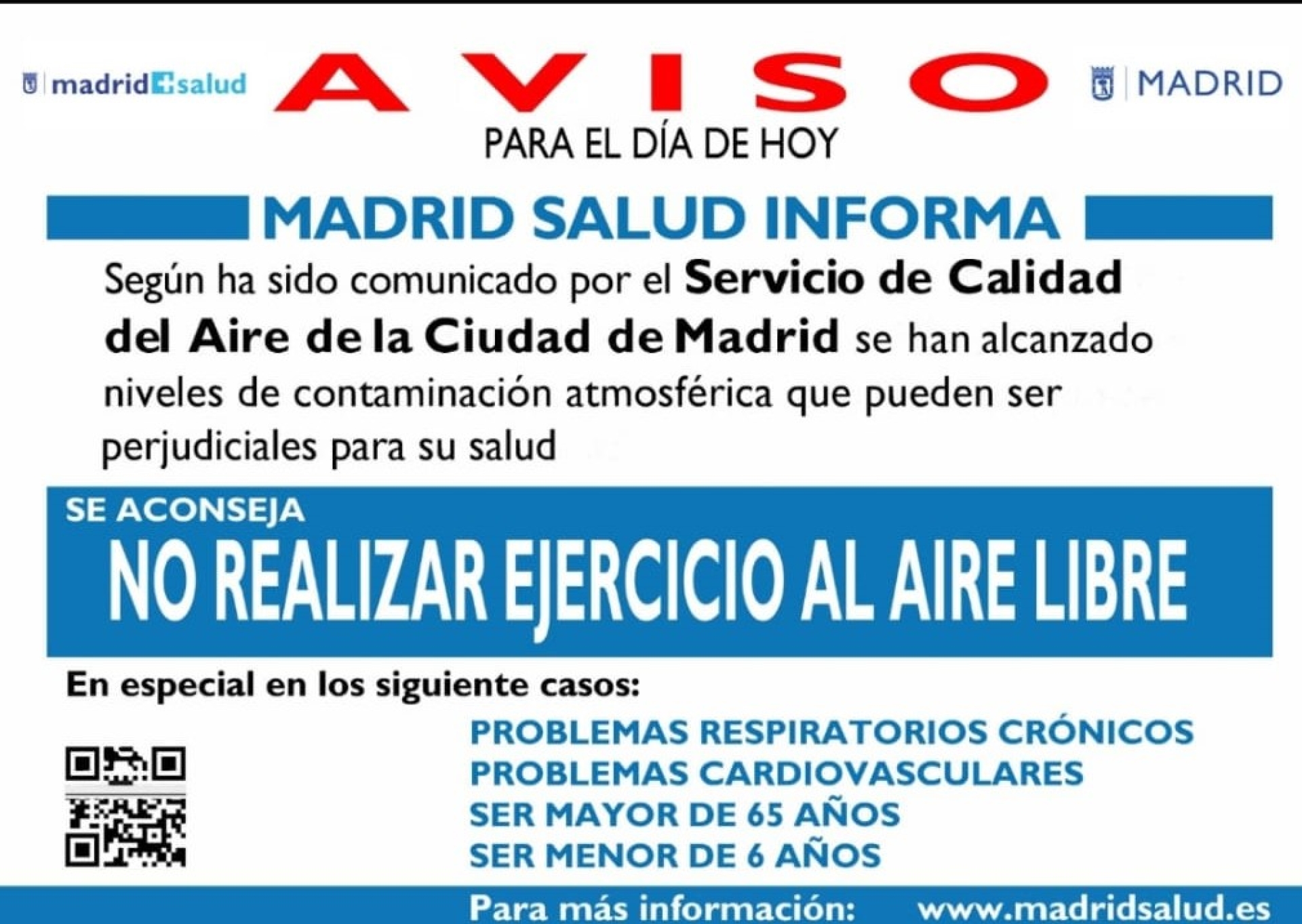 Desde Madrid Salud se aconseja no realizar ejercicio al aire libre durante el día de hoy debido a los altos niveles de polvo y partículas en suspensión.