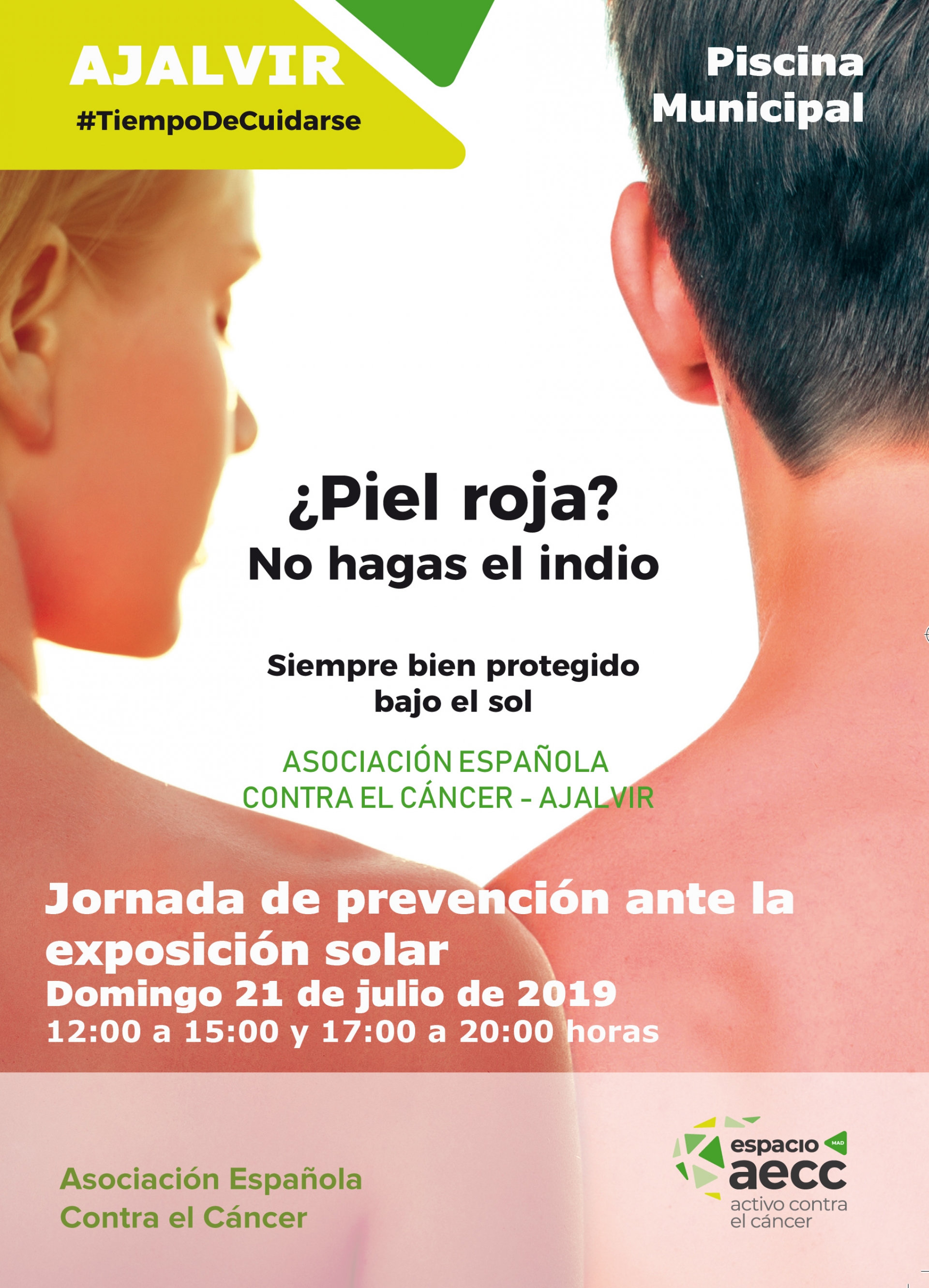 ¿Piel roja? NO hagas el indio, estate siempre bien protegido bajo el sol. Es una recomendación de la Asociación Española Contra el Cáncer – Ajalvir
