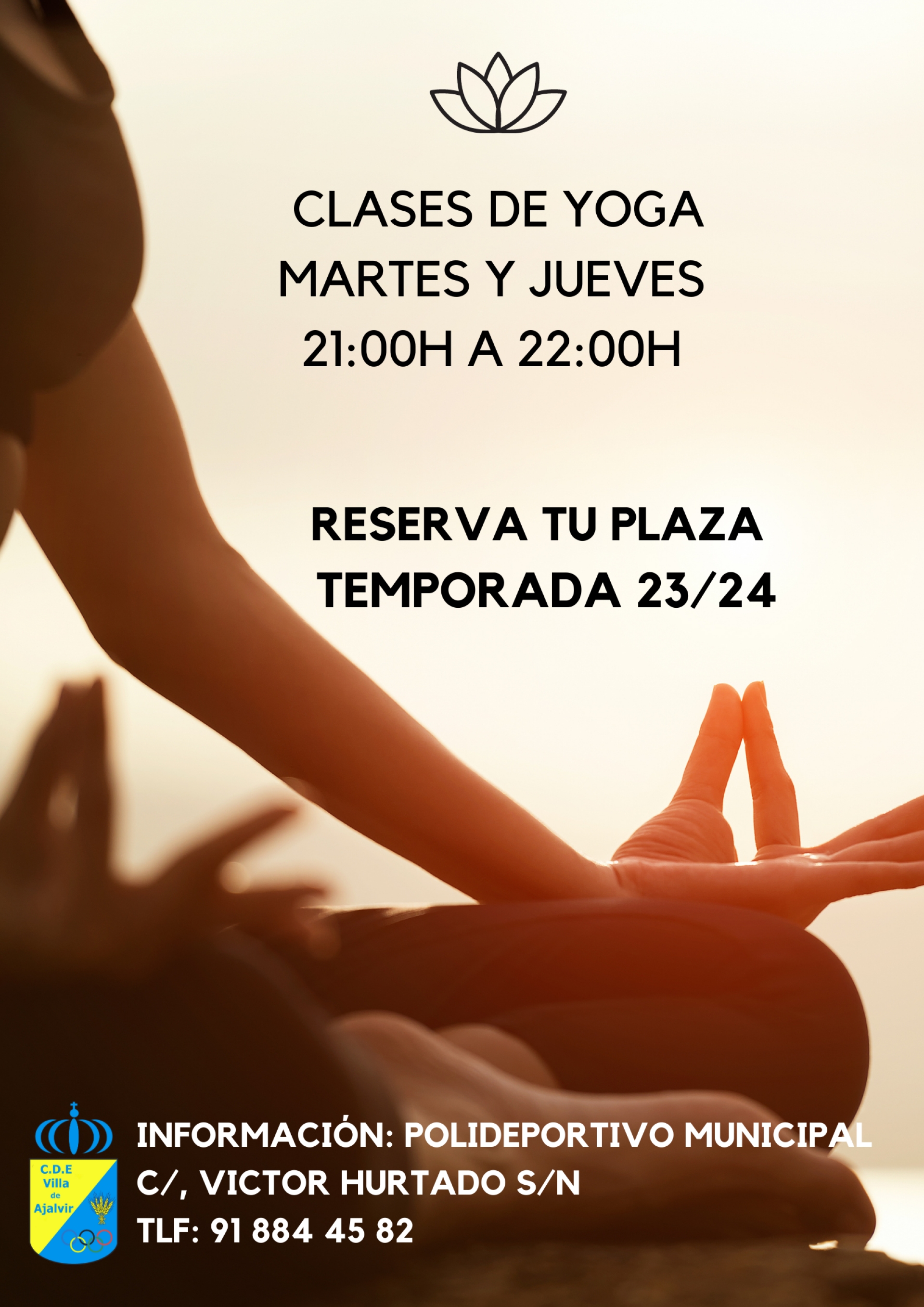 Clases de Yoga , los martes y jueves de 21:00 a 22:00 h en la sala multiusos.