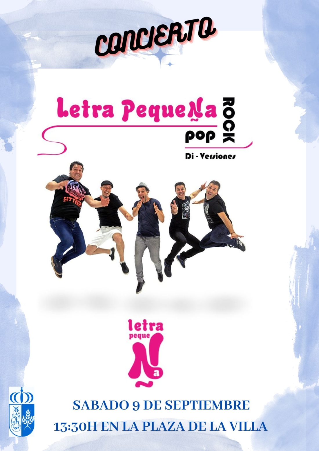 El próximo sábado día 9 a las 13:30h en la Plaza de la Villa, podréis disfrutar de las mejores versiones Pop Rock de mano del grupo “Letra Pequeña ” .