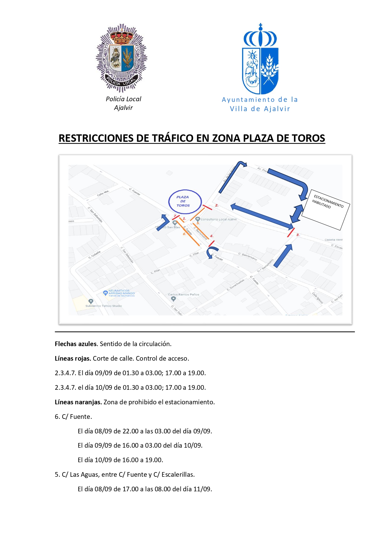Con motivo de los festejos taurinos que tendrán lugar los días 9 y 10 de septiembre, se realizaran las siguientes restricciones al tráfico en las siguientes calles: