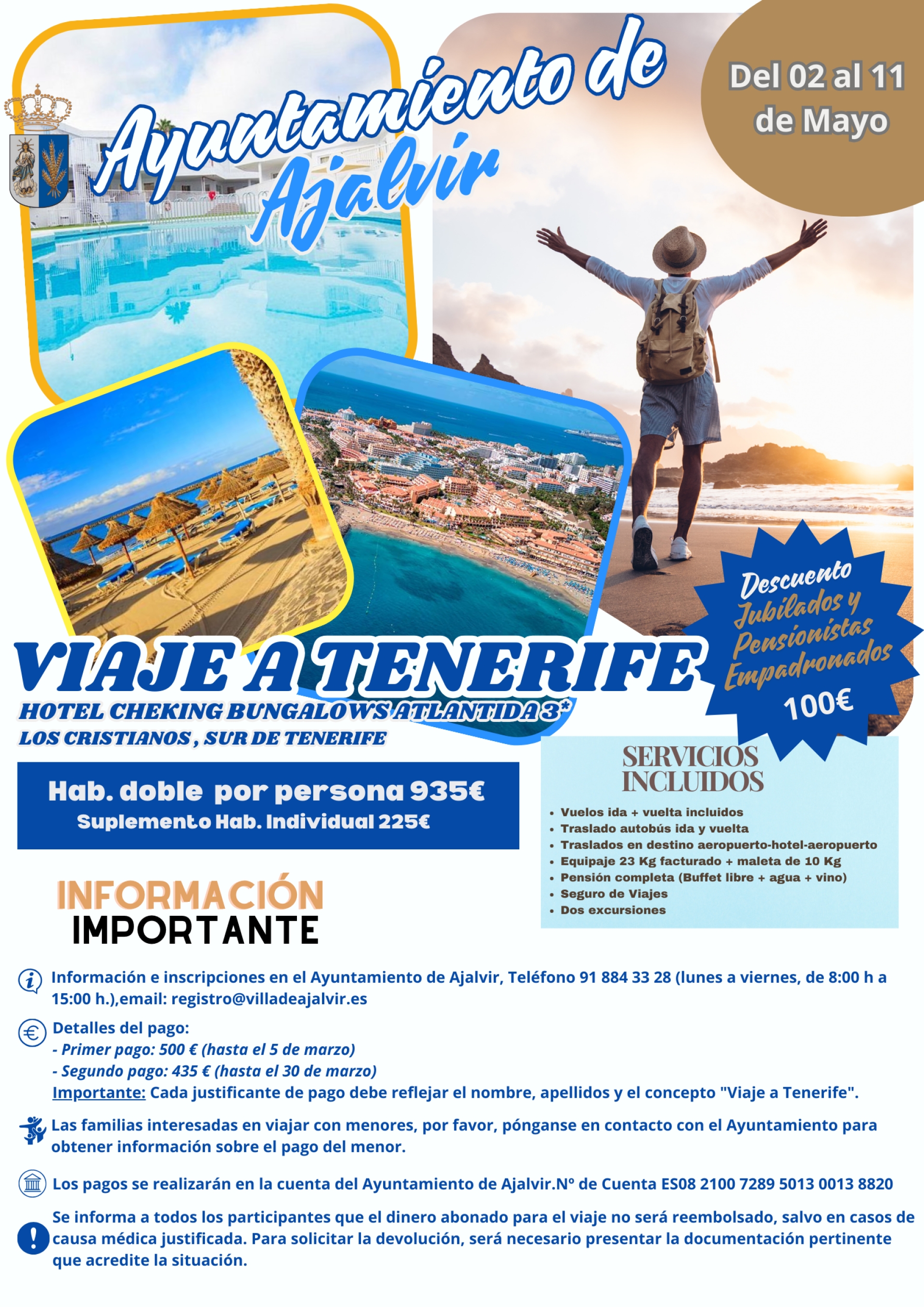 Para inscripciones y consultas, puedes contactar con el Ayuntamiento de Ajalvir al teléfono 918 843 328, de lunes a viernes, de 8:00 a 15:00, o a través del correo electrónico Esta dirección de correo electrónico está siendo protegida contra los robots de spam. Necesita tener JavaScript habilitado para poder verlo.