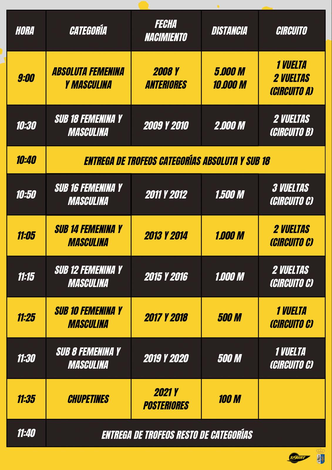Presencial media hora antes de cada carrera.