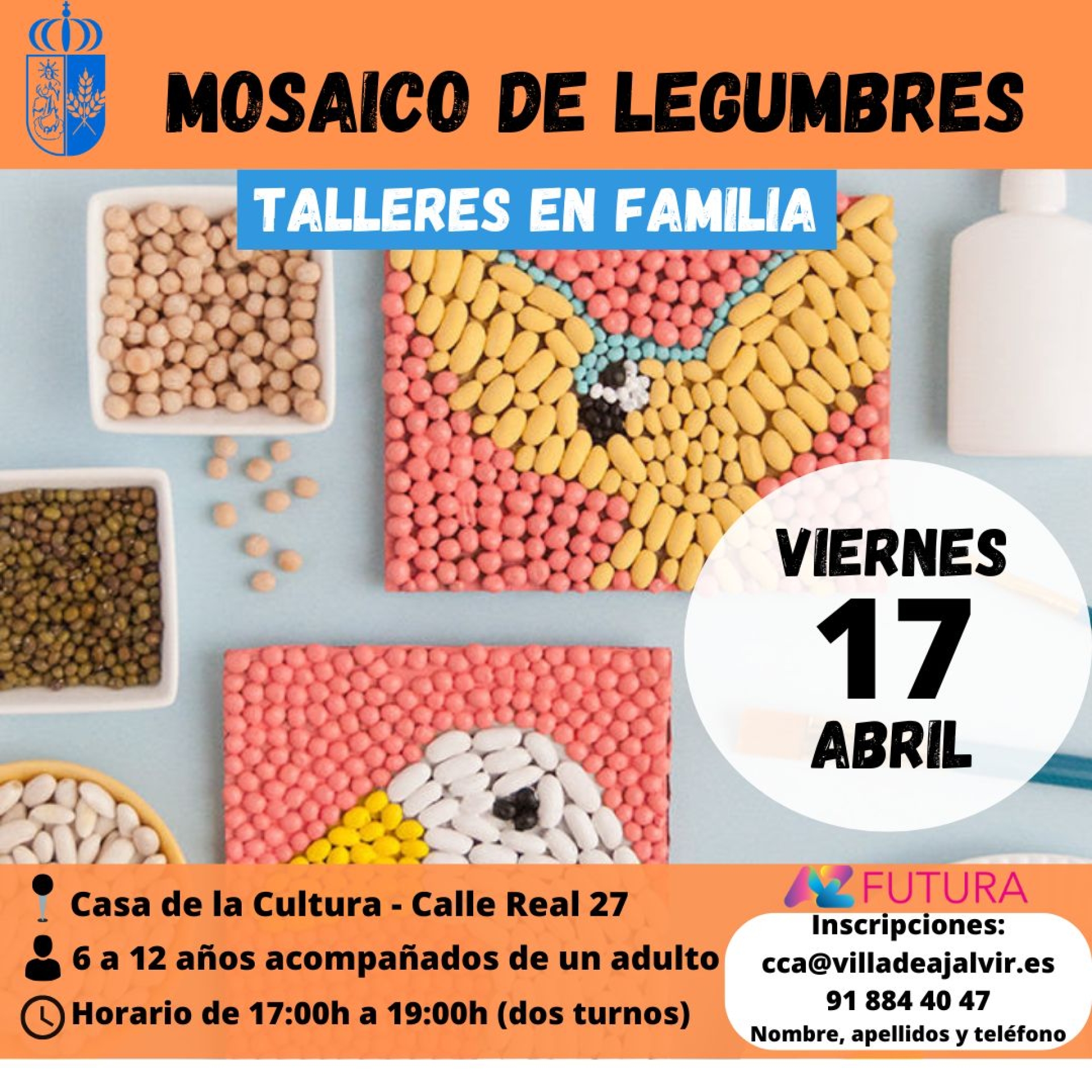 El próximo viernes 17 de abril te esperamos en la Casa de la Cultura para disfrutar mientras reciclamos y creamos nuestro propio mosaico con diferente legumbres. ¡Ven y disfruta de un rato en familia! ¿Te lo vas a perder?