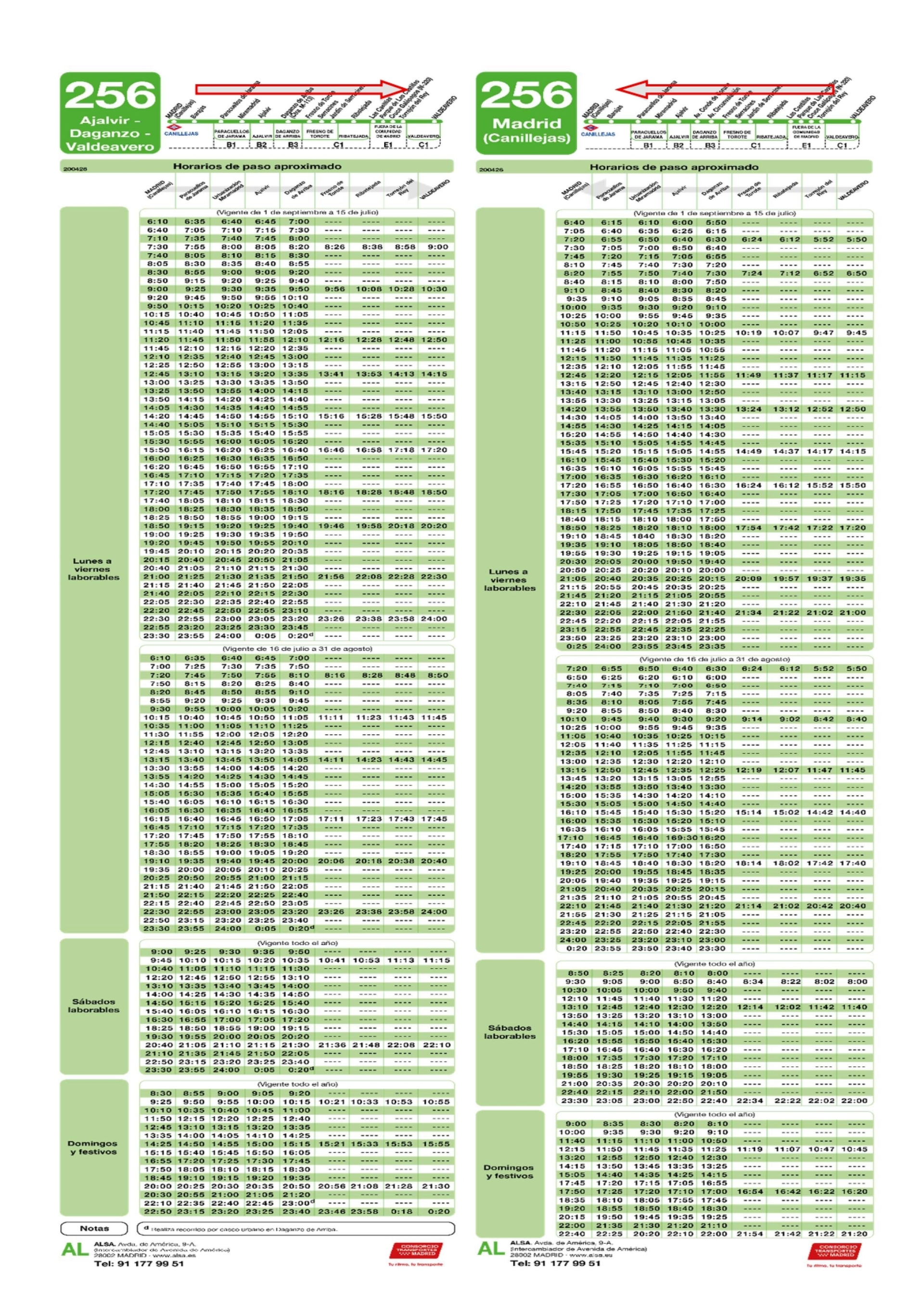 NUEVOS HORARIOS LINEA DE AUTOBUSES 256 Destacado