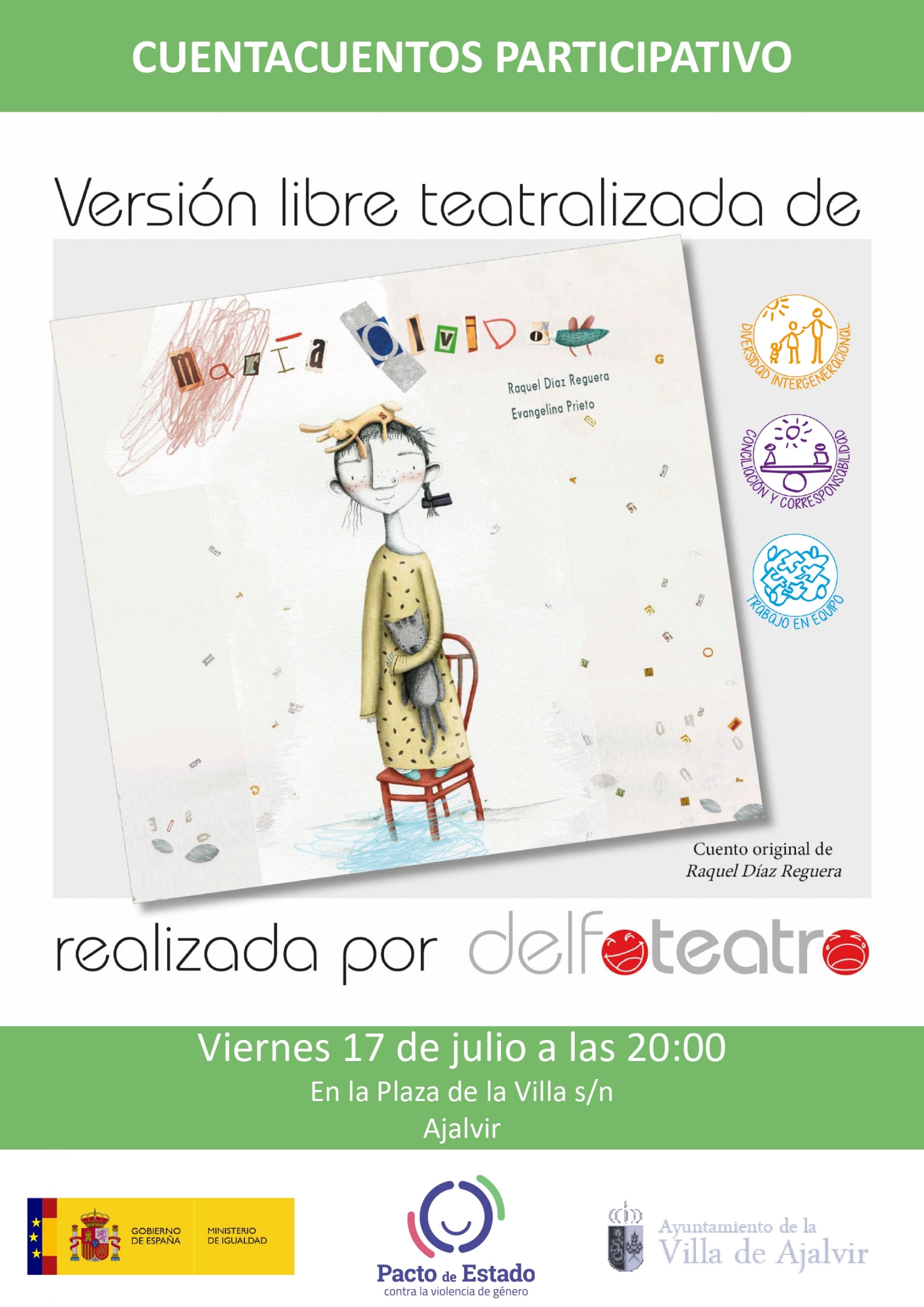 Viernes 17 de julio a las 20.00 horas en la Plaza de la villa, Cuentacuentos “María Olvido” versión libre teatralizada.