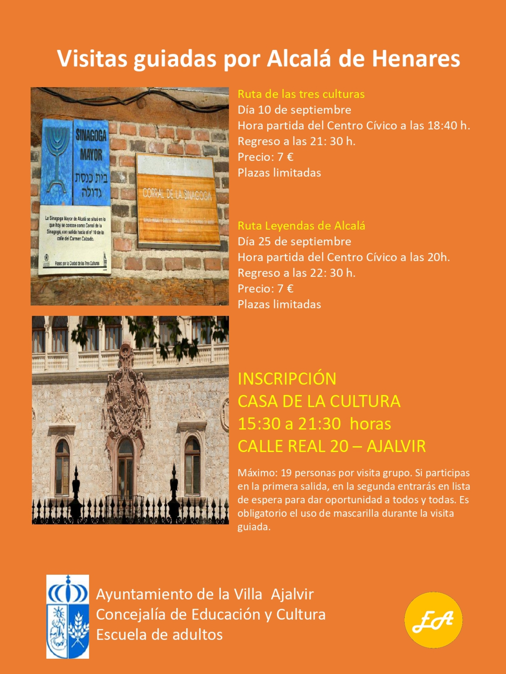 Abierto plazo de inscripciones para las visitas guiadas por Alcalá de Henares los próximos días 10 de septiembre, ruta de las tres culturas y 25 de septiembre, ruta leyendas de Alcalá.